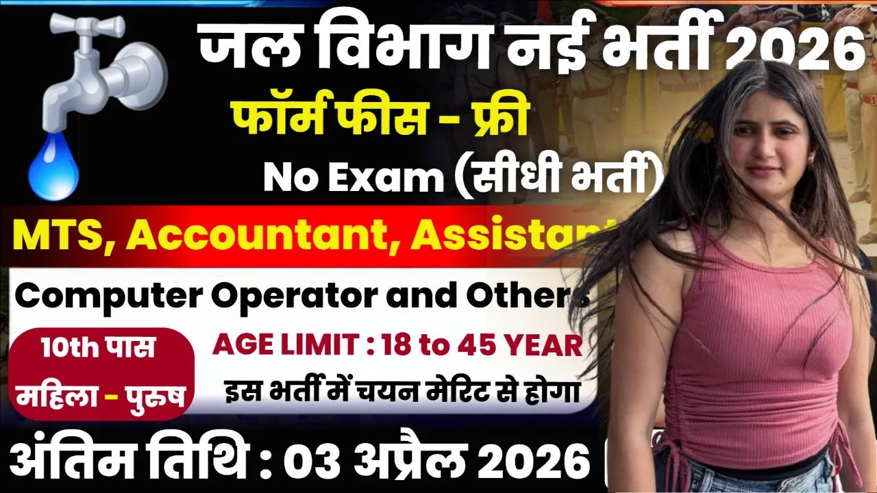 Water Department Recruitment 2026 No Exam Direct Interview: अगर आप बिना परीक्षा सरकारी नौकरी पाना चाहते हैं, तो आपके लिए शानदार मौका है। Jal Nigam Maryadit द्वारा विभिन्न पदों पर भर्ती का नोटिफिकेशन जारी किया गया है, जिसमें Direct Interview के माध्यम से चयन किया जाएगा। Here we will notify you about Water Department Recruitment 2026 No Exam Direct Interview Notification, Last Date to Apply, Important Dates, Apply Online, Official Website, PDF & More.